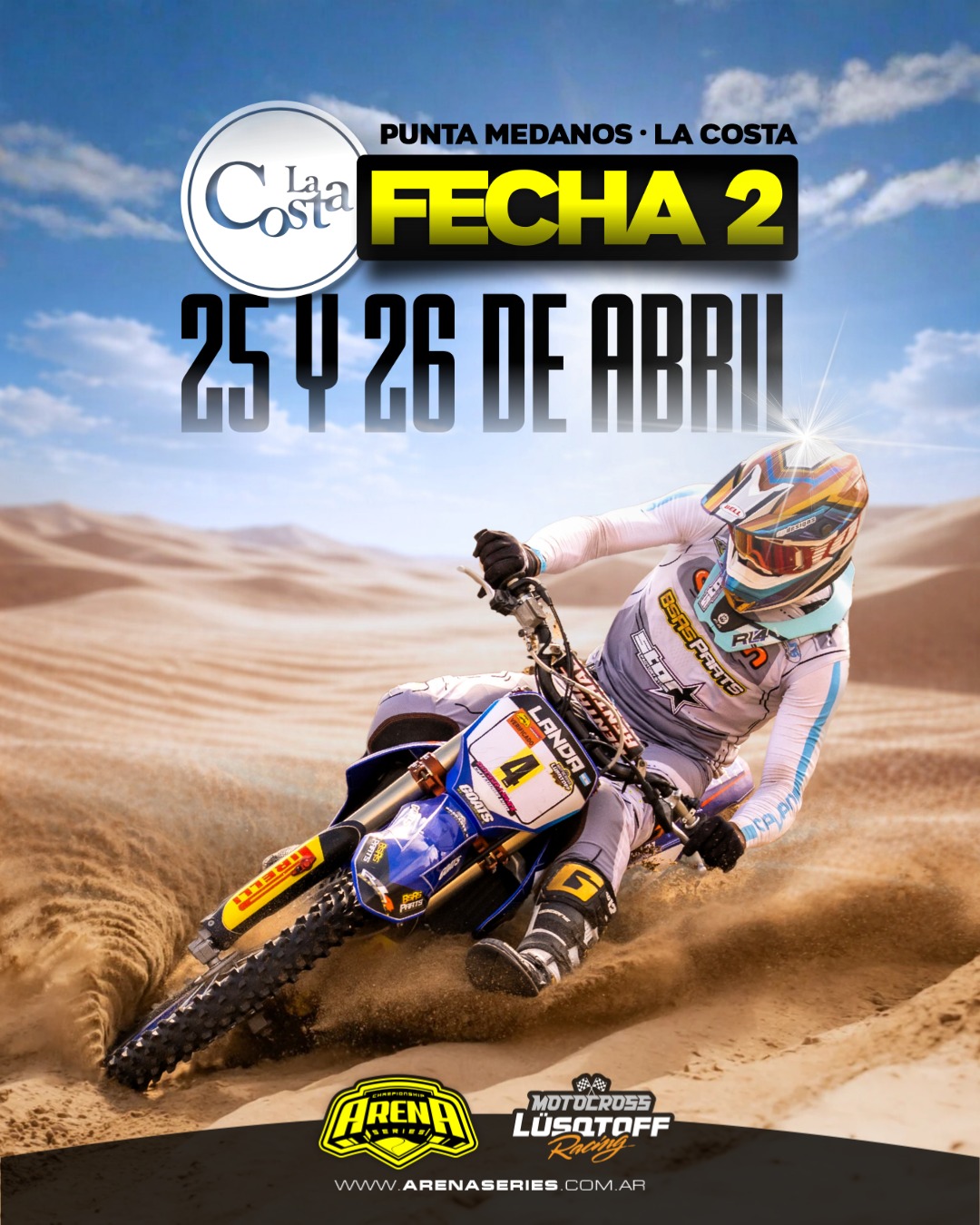 Pilotos, familias, colaboradores y público en general, tenemos el agrado de anunciar la 2da fecha del CAMPEONATO PROVINCIAL ARENA SERIES LUSQTOFF 2026 que se llevará a cabo en Punta Médanos, en un trazado que cuenta con un recorrido de 5,5kms y con zonas de médanos intercaladas con playa.
